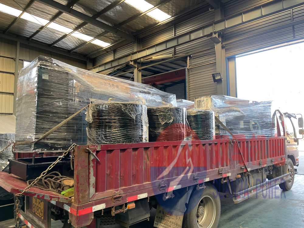 3臺開架式上柴柴油發電機組,標配蓄電池、消聲器、燃油箱等相關附件,今日裝車發運浙江嘉興客戶現場。該柴油發電機組為不同的泵房使用,每個泵房一臺,專車送貨到指定位置。