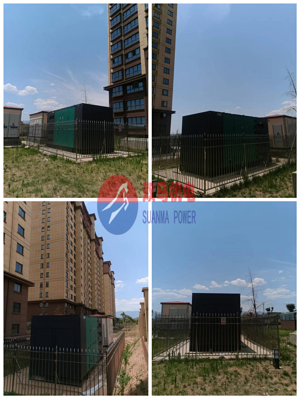 小區應急備用電源投運交付業主使用。現場選用3臺1000kw靜音柴油發電機組,戶外安放,外型美觀大方,確保意外停電時小區重要電氣設備的正常運轉" />